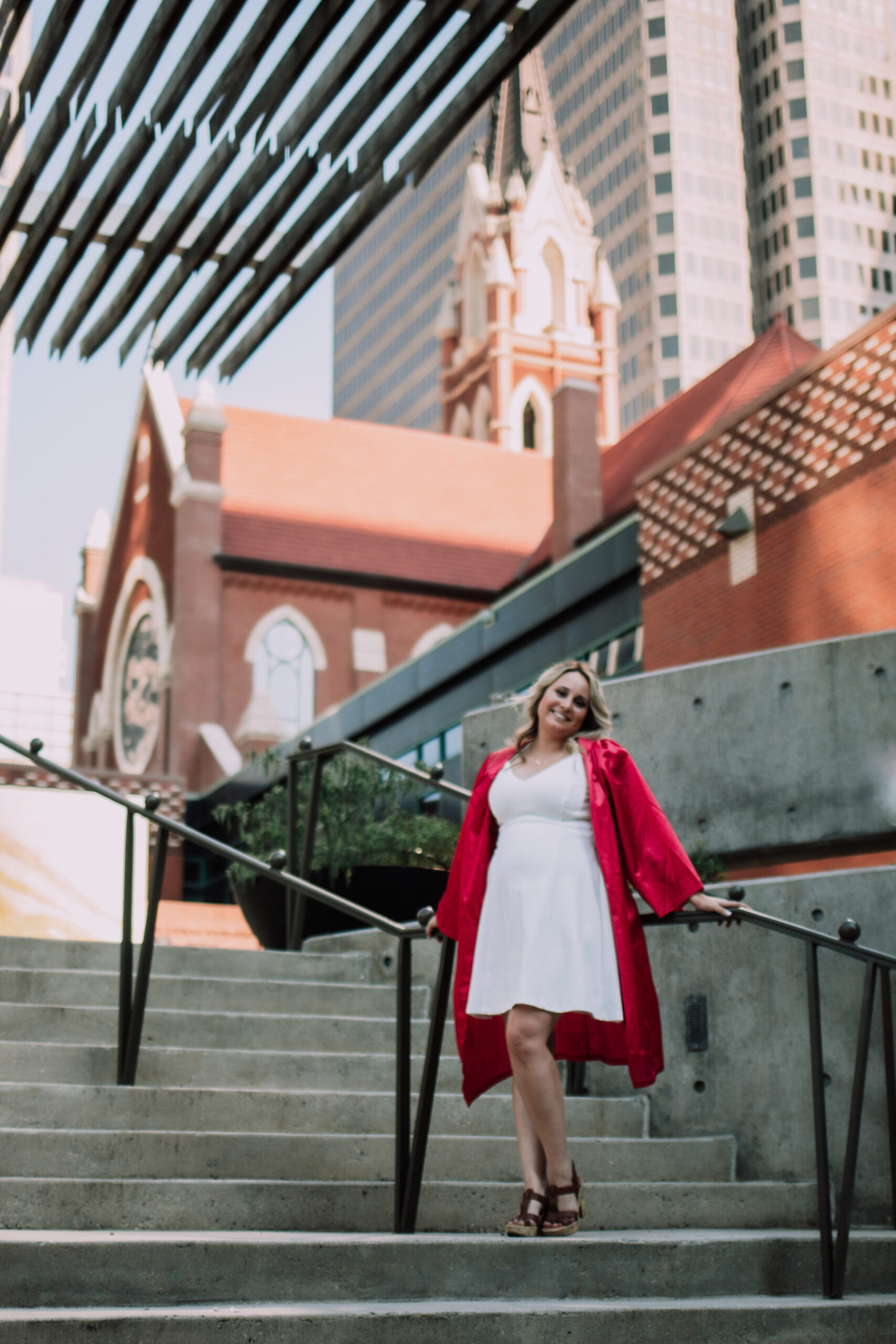 This area of downtown is perfect for those scenic grad photos we all love. The AT&T Center and surrounding Arts District gives so many different locations in such a small space. This is actually one of the most popular spots for graduation photos in Dallas. Scroll down to see why!