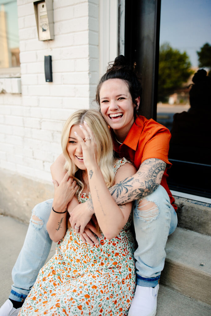 These mamas are about to have their first baby, so let’s check out their downtown McKinney couples shoot and pregnancy announcement! If you’re looking for a McKinney LGBTQ+ Family Photographer, keep reading or click here for more info.