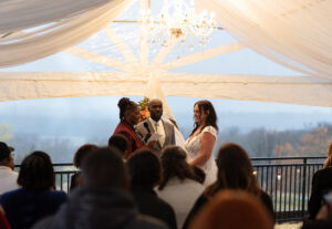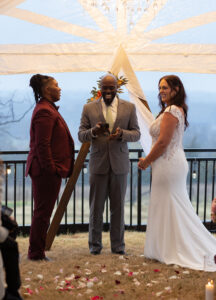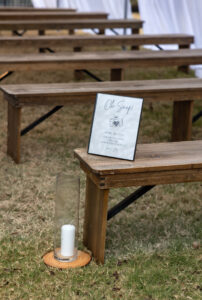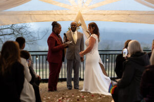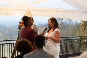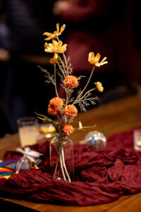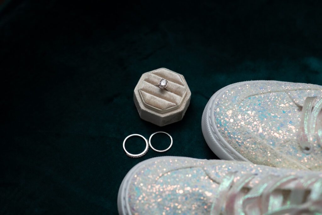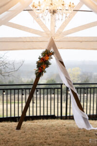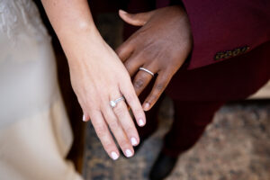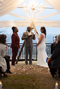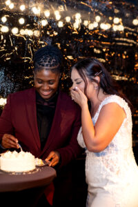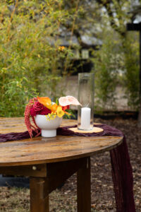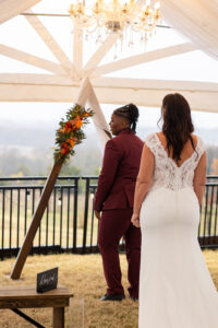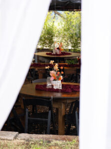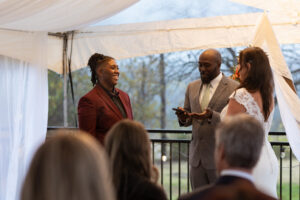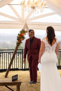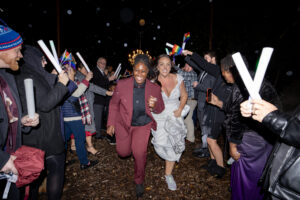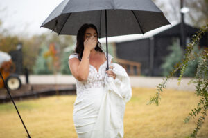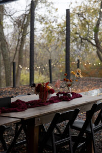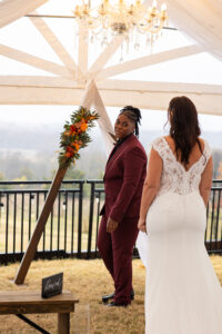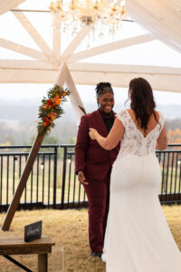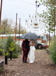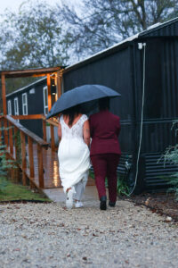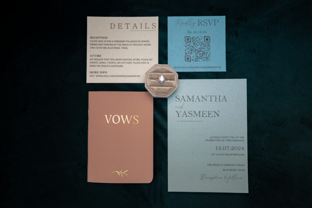 Today we’re diving into Sam + Yaz’s rainy December wedding at the Venue at Crescent Moon. This unique boutique venue in Blue Ridge, TX is a gorgeous hidden gem of North Texas wedding venues. I love the moody vibe the rain cast over everything; it made these details feel even more beautiful and sentimental. Keep scrolling to see more from this cute, queer wedding day!
