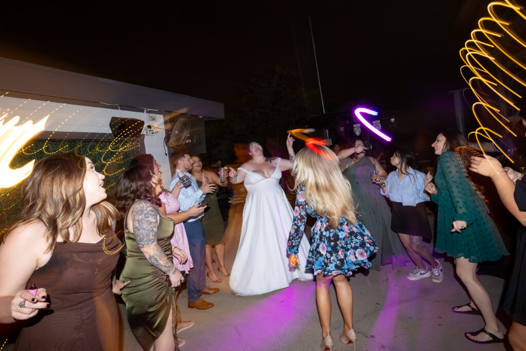 One thing about me is: the reception is my favorite part. I love the energy that a wedding reception has; when all the pressure is off and everyone’s true selves come out. That’s when the real party starts and I get to capture those real candid moments that everyone loves. A cool venue totally brings the whole night together. This classic, totally unique venue sits in the heart of East Dallas along Greenville Ave. It’s a farm-to-table restaurant with a kickass event space. Maggie and Michael rented out the rooftop for their Sundown at Granada wedding. It was perfect for their intimate wedding of about 60 people, and completely fit the theme of their laidback, music-centered reception. They blasted emo classics all night and ran off into the night after a sparkler exit.