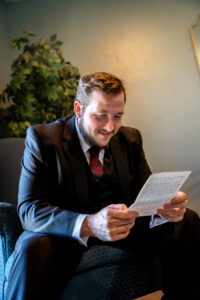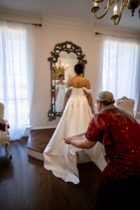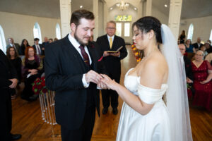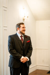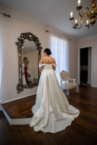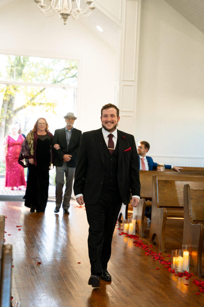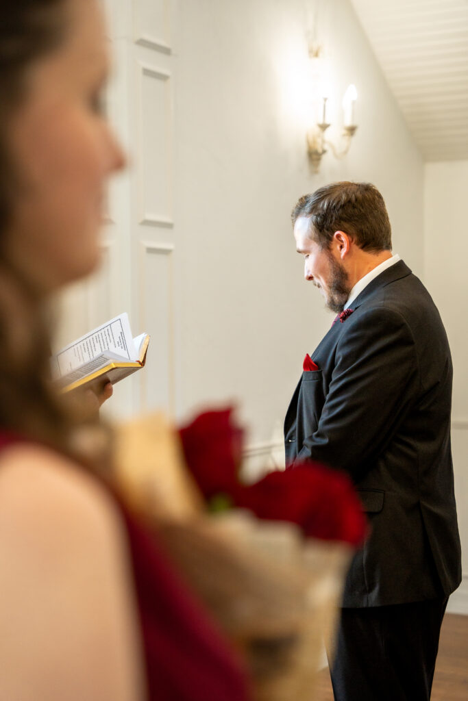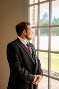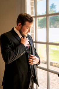 Kayla and Michael found me nearly two years ago at a wedding expo. You may have seen me capture their official proposal at the Arboretum in a previous post. Before booking me for their wedding at The Springs Valley View, we actually met up for coffee, and they told me about their vision for their wedding day. They described the little white chapel and the romantic, almost black-tie-meets-fairytale feeling they were going for. (I love the way this came out in their details on the checkered floor – keep scrolling to see!)